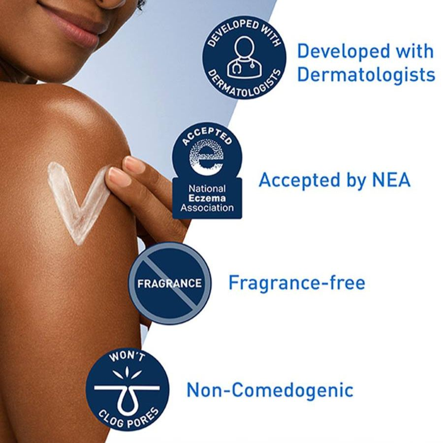 CeraVe Daily Moisturizing Lotion is a lightweight, oil-free moisturizer that helps hydrate the skin and restore its natural barrier. Formulated with 3 essential ceramides that work together to lock in skins moisture and help restore your skin’s protective barrier. MVE technology encapsulates ceramides to ensure efficient delivery within the skin’s barrier and slow release over time. Supporting your protective skin barrier, long after you’ve finish applying. Our daily moisturizer leaves the skin feeling comfortable and is gentle on the skin as it provides 24-hour hydration.