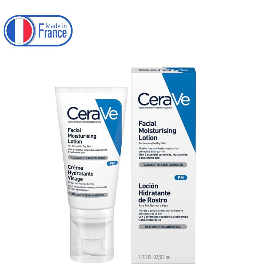 CeraVe PM Facial Moisturising Lotion is a gel-cream evening moisturiser for normal to dry skin. With 3 essential ceramides, niacinamide, and hyaluronic acid, this lotion provides a continuous release of moisturising ingredients for all-night hydration.